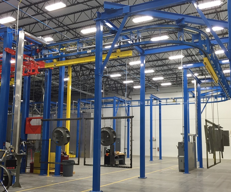 A family-owned metal fabricator required flexibility in its overhead conveyor–flexibility that would enable them to accommodate a variety of part sizes, a wide range of job quantities, as well as custom part recipes and processes.