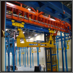 IntelliTrak installed 2600 ft. of 3500 Series Conveyor with 40 carriers (10,000 lb. capacity) and two vertical lifts integrated into the existing finishing equipment.